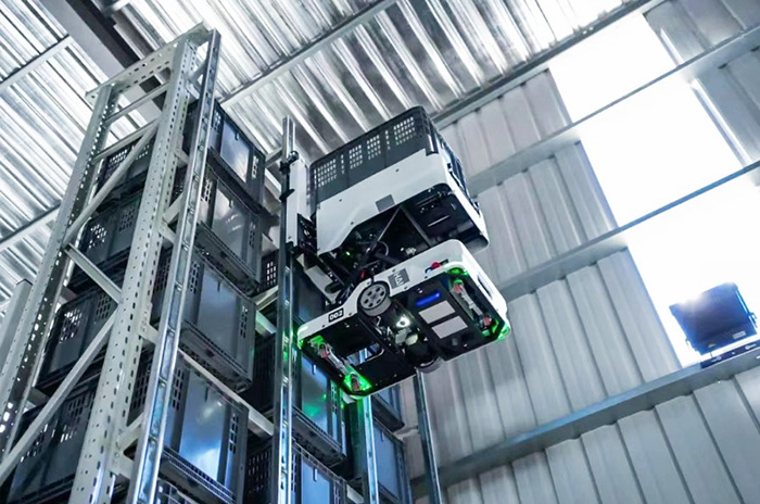 這是解決方案的核心突破。“閃攀”機(jī)器人不再局限于地面行駛,而是可以像“蜘蛛俠”一樣,沿著特制貨架立柱垂直攀爬,直達(dá)目標(biāo)貨位。